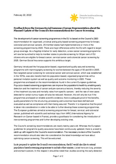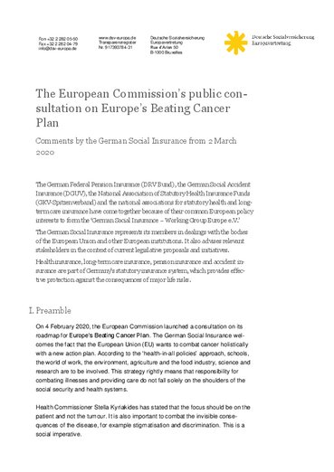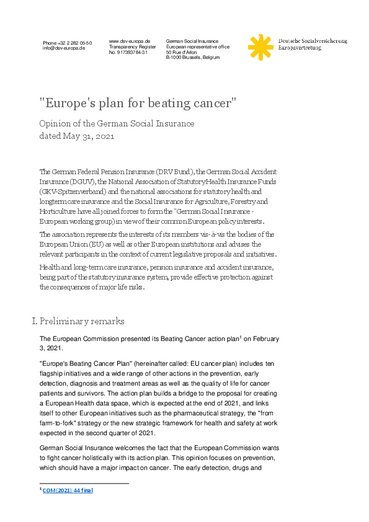 European “Beating cancer plan” reflect the importance that the EU places on